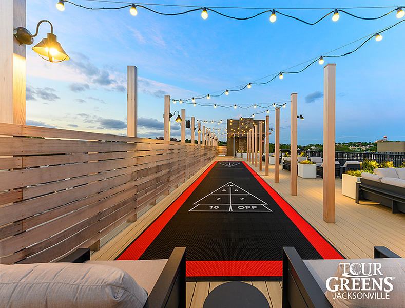 Let Tour Greens Jacksonville add some fun to your home or facility with a VersaCourt shuffleboard court. These courts are a cost-effective and low maintenance alternative to traditional stained concrete courts. They are not only a great aesthetic addition to your property, but they provide a perfect disc glide for competitive play.